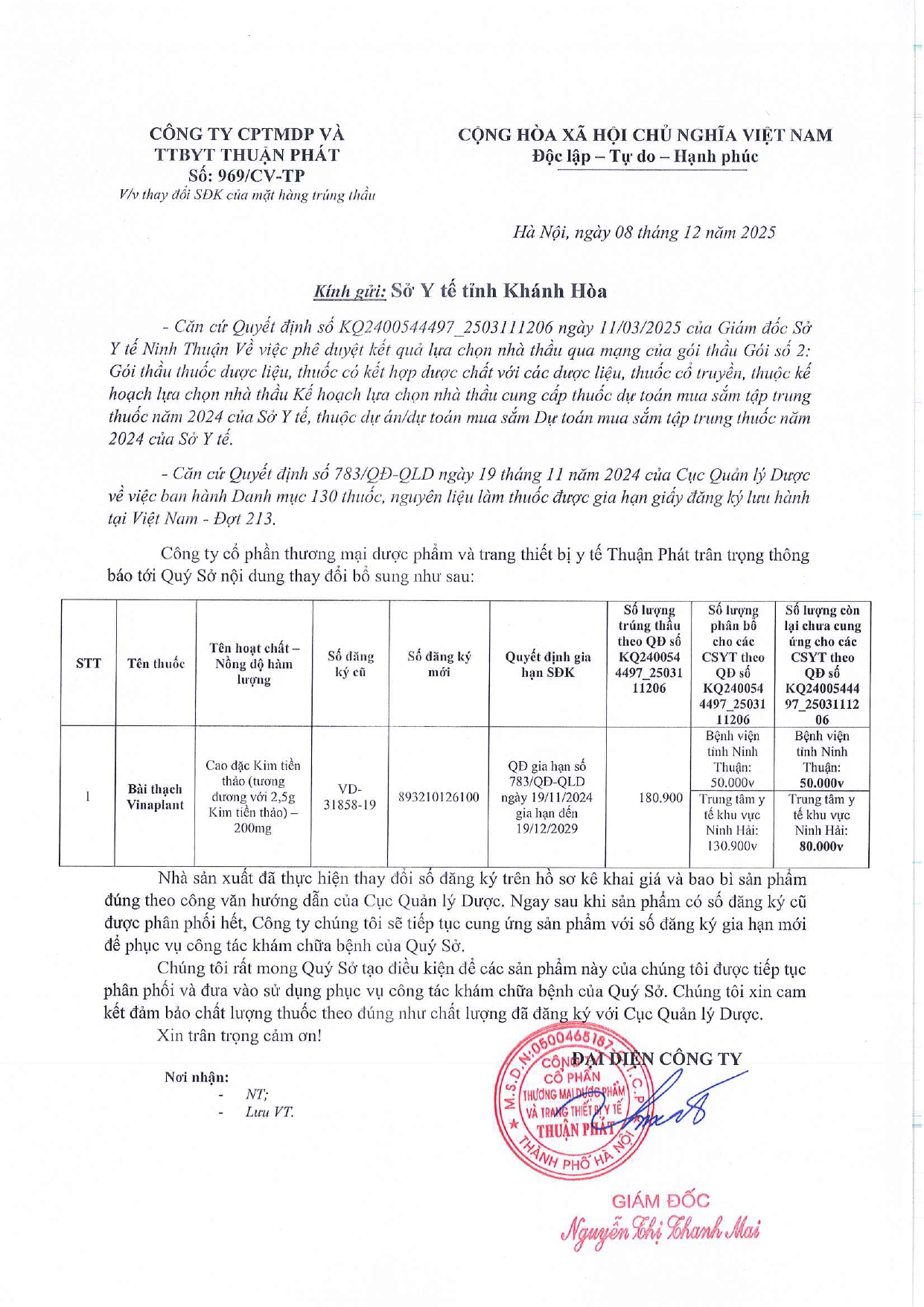 Quyết định Về việc điều chỉnh một số nội dung của Quyết định số 754/QĐ-SYT ngày 15/10/2025 của Sở Y tế về việc phê duyệt kết quả lựa chọn nhà thầu qua mạng gói số 1: Gói thầu thuốc Generic thuộc kế hoạch lựa chọn nhà thầu cung cấp thuốc: Mua sắm tập trung thuốc cấp địa phương tỉnh Khánh Hòa năm 2025-2027 (lần 2)