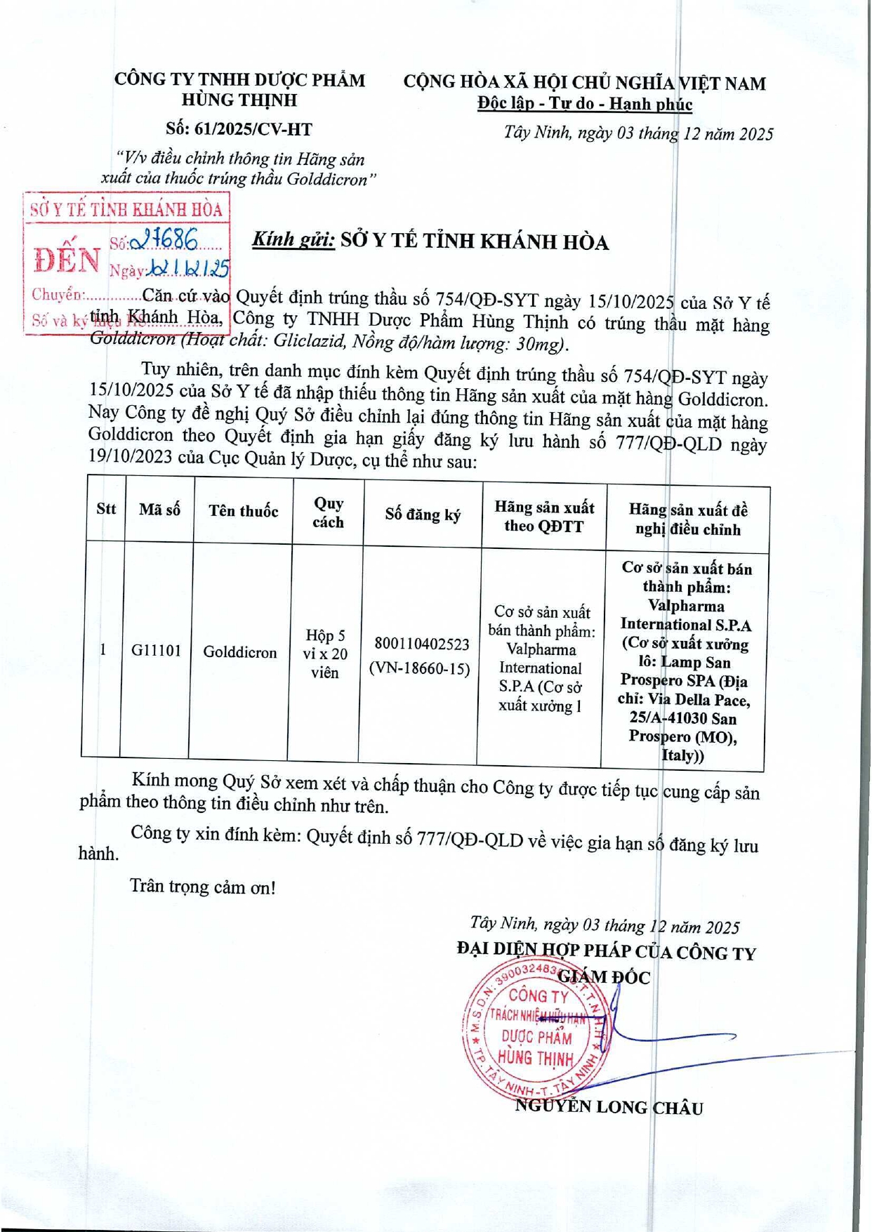 Quyết định Về việc điều chỉnh một số nội dung của Quyết định số 754/QĐ-SYT ngày 15/10/2025 của Sở Y tế về việc phê duyệt kết quả lựa chọn nhà thầu qua mạng gói số 1: Gói thầu thuốc Generic thuộc kế hoạch lựa chọn nhà thầu cung cấp thuốc: Mua sắm tập trung thuốc cấp địa phương tỉnh Khánh Hòa năm 2025-2027