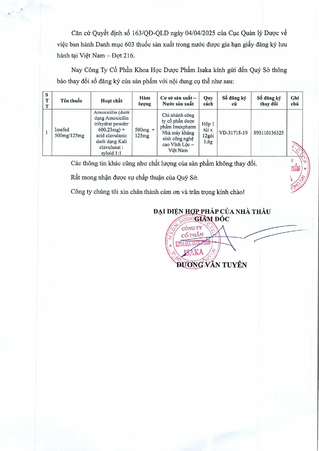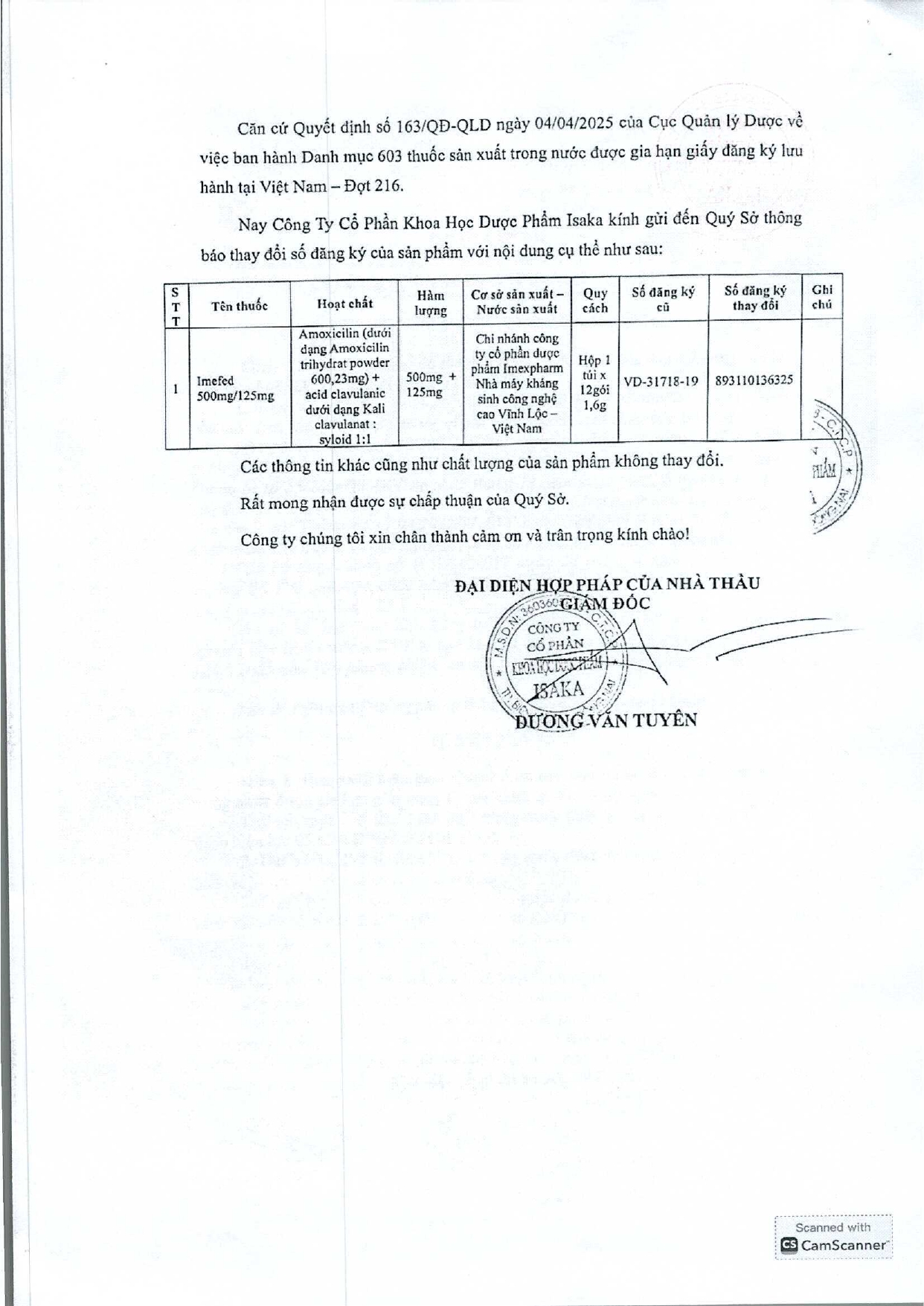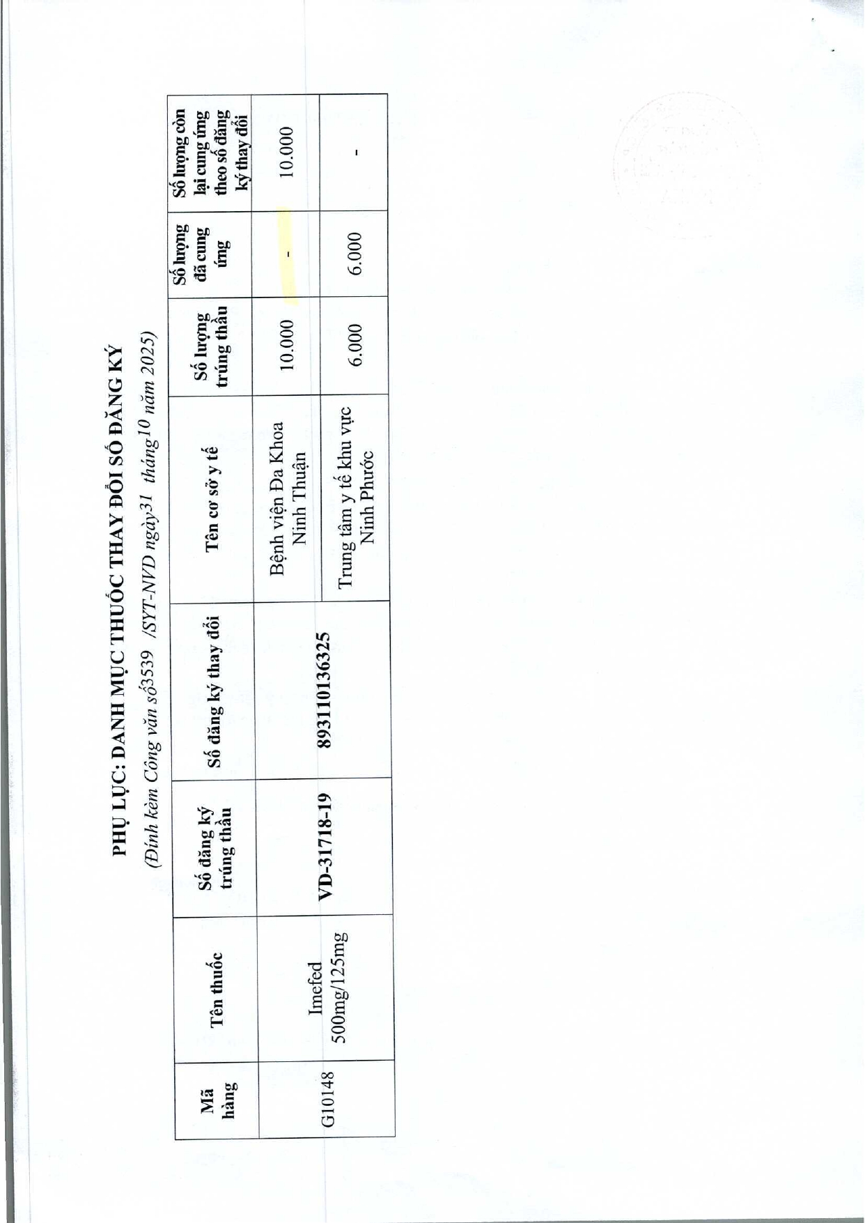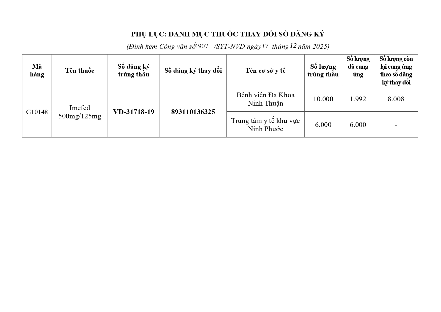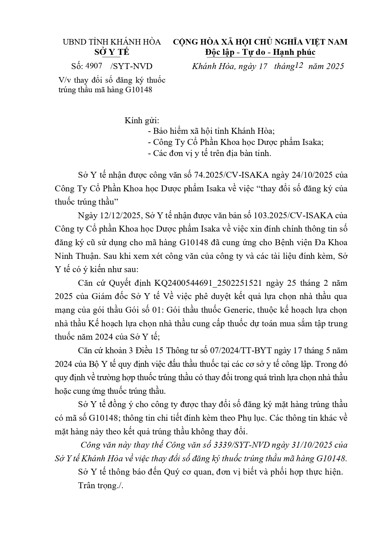 V/v thay đổi số đăng ký thuốc trúng thầu mã hàng G10148