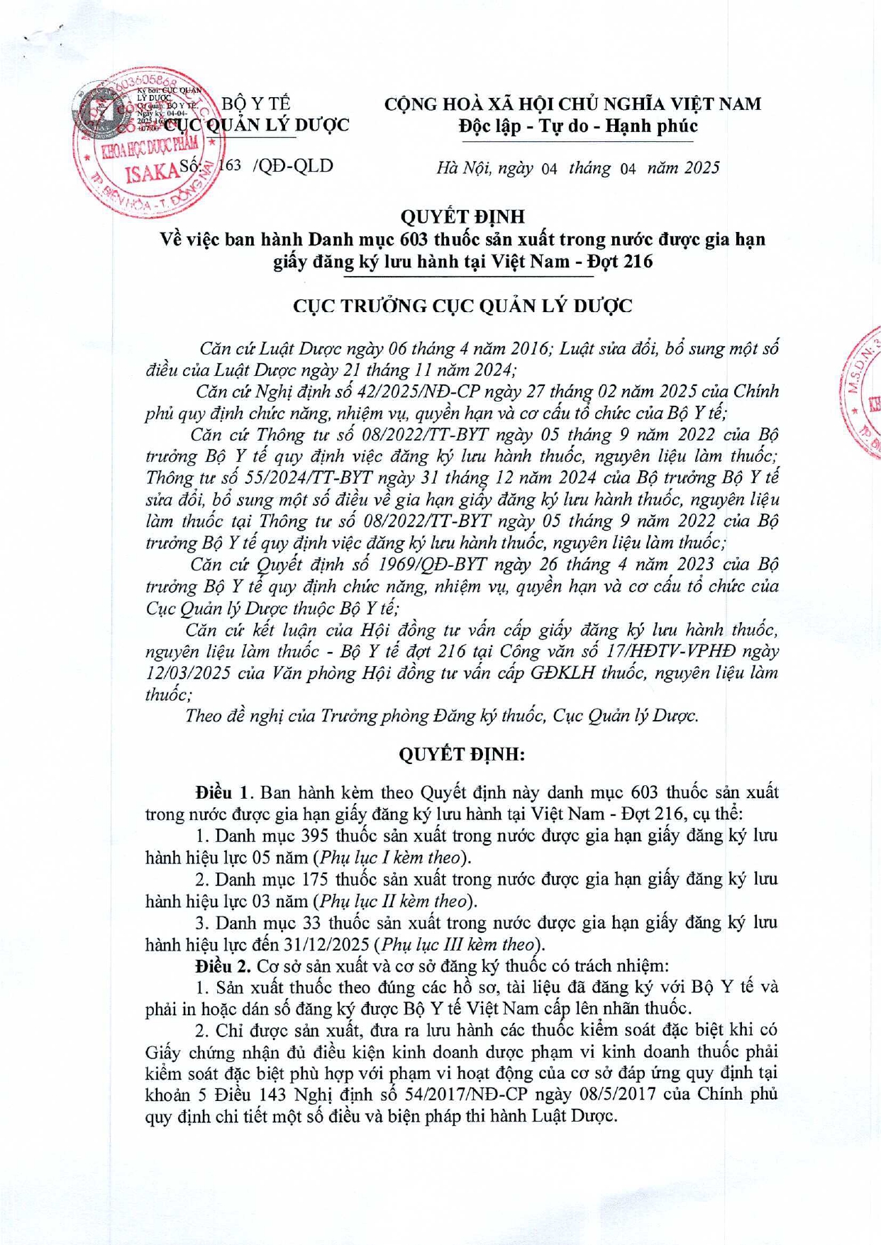 Quyết định Về việc phê duyệt kết quả lựa chọn nhà thầu qua mạng gói số 1: Gói thầu thuốc Generic thuộc kế hoạch lựa chọn nhà thầu cung cấp thuốc: Mua sắm tập trung thuốc cấp địa phương tỉnh Khánh Hòa năm 2025-2027