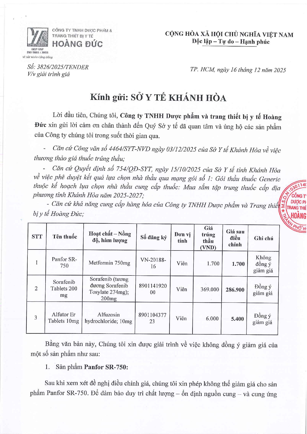 Quyết định Về việc điều chỉnh một số nội dung của Quyết định số 754/QĐ-SYT ngày 15/10/2025 của Sở Y tế về việc phê duyệt kết quả lựa chọn nhà thầu qua mạng gói số 1: Gói thầu thuốc Generic thuộc kế hoạch lựa chọn nhà thầu cung cấp thuốc: Mua sắm tập trung thuốc cấp địa phương tỉnh Khánh Hòa năm 2025-2027 (lần 2)