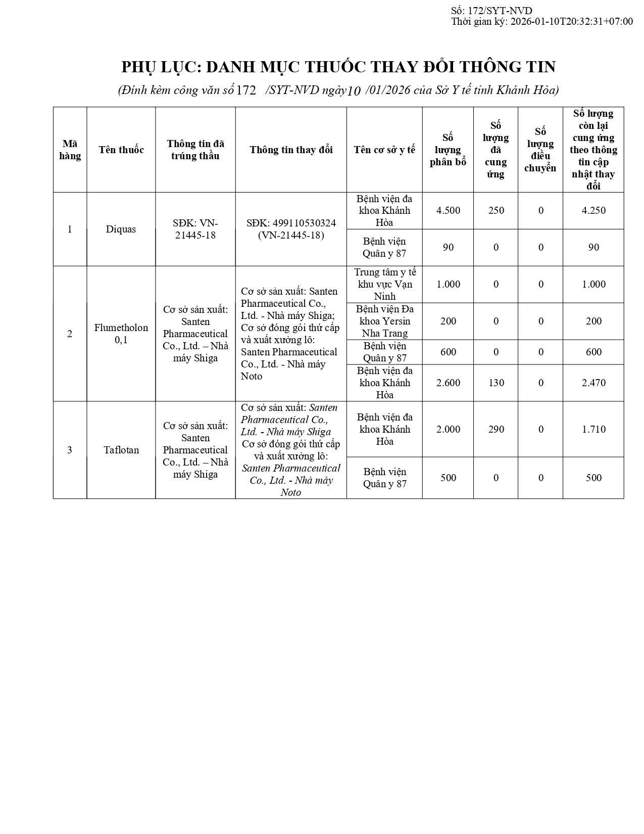 Quyết định Về việc điều chỉnh một số nội dung của Quyết định số 754/QĐ-SYT ngày 15/10/2025 của Sở Y tế về việc phê duyệt kết quả lựa chọn nhà thầu qua mạng gói số 1: Gói thầu thuốc Generic thuộc kế hoạch lựa chọn nhà thầu cung cấp thuốc: Mua sắm tập trung thuốc cấp địa phương tỉnh Khánh Hòa năm 2025-2027 (lần 2)