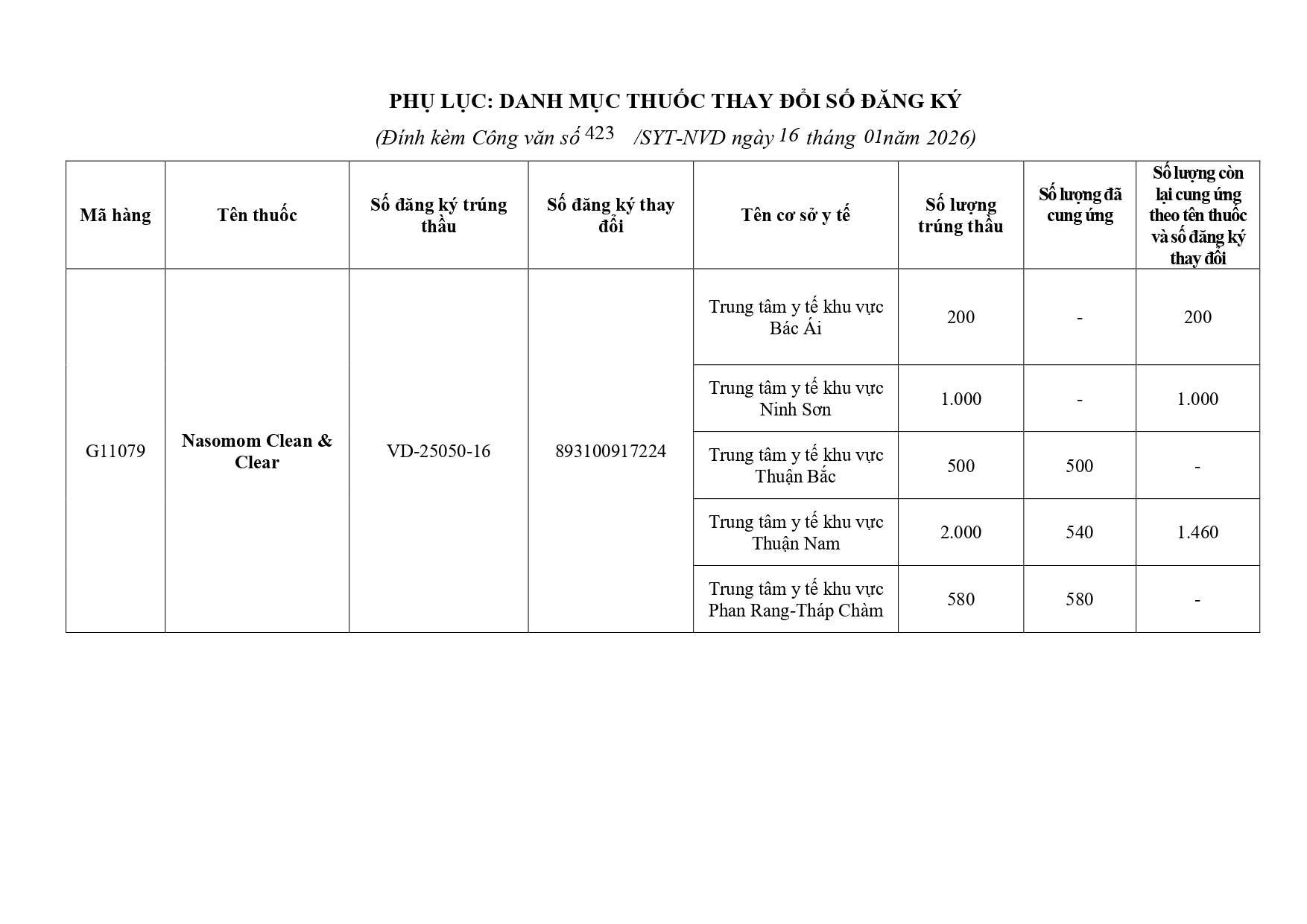 Quyết định Về việc điều chỉnh một số nội dung của Quyết định số 754/QĐ-SYT ngày 15/10/2025 của Sở Y tế về việc phê duyệt kết quả lựa chọn nhà thầu qua mạng gói số 1: Gói thầu thuốc Generic thuộc kế hoạch lựa chọn nhà thầu cung cấp thuốc: Mua sắm tập trung thuốc cấp địa phương tỉnh Khánh Hòa năm 2025-2027 (lần 2)