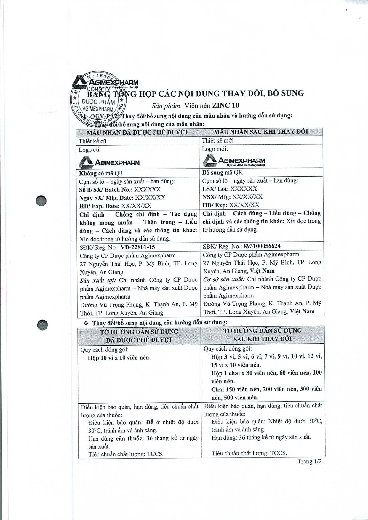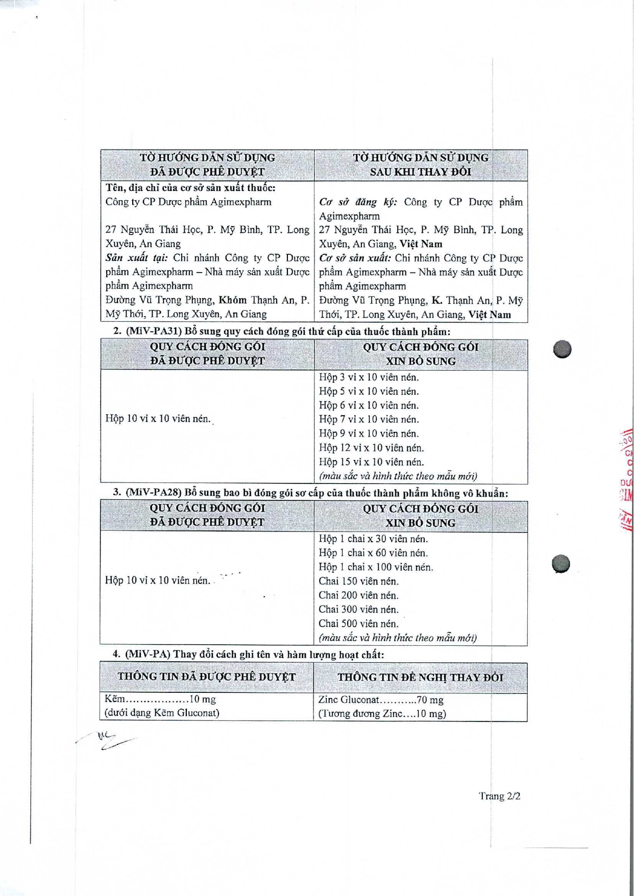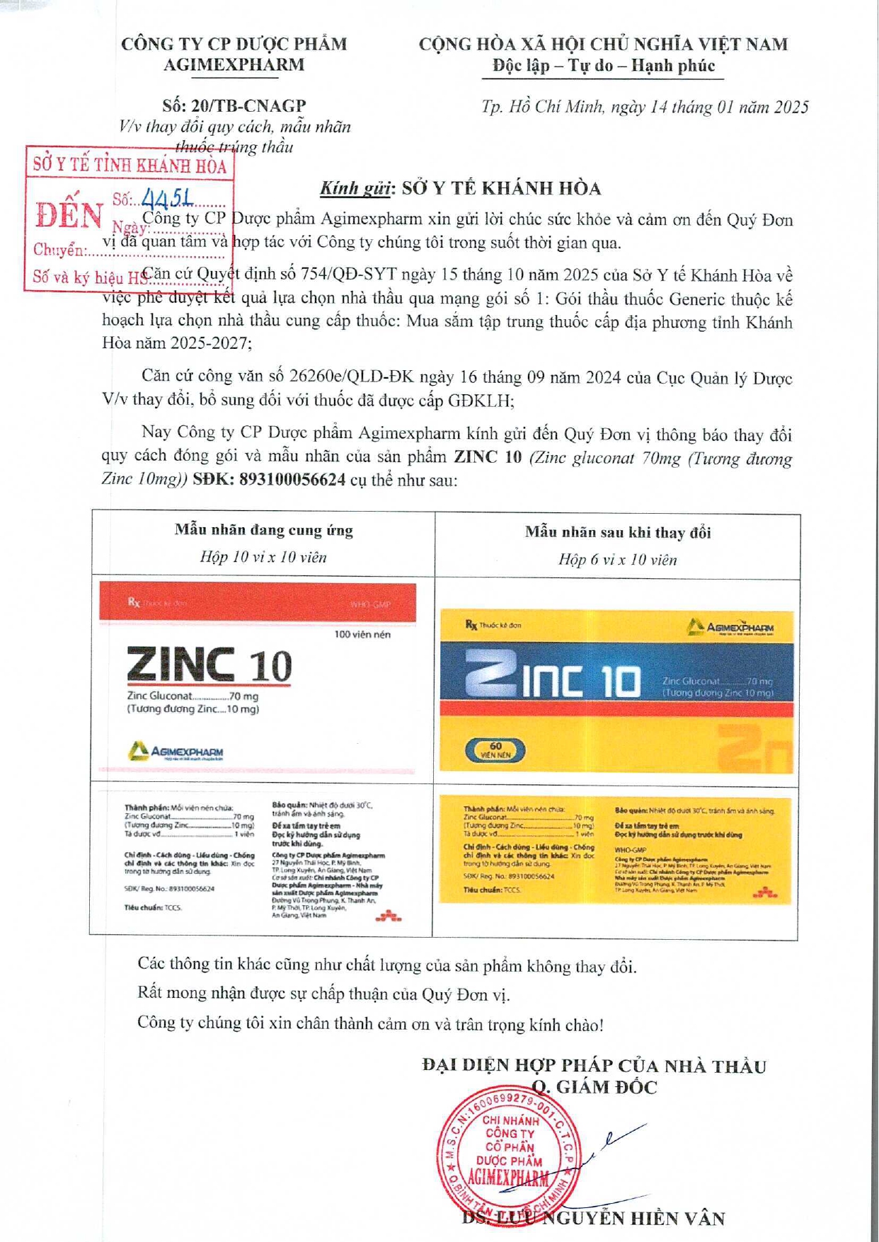 V/v thay đổi quy cách đóng gói của mặt hàng trúng thầu