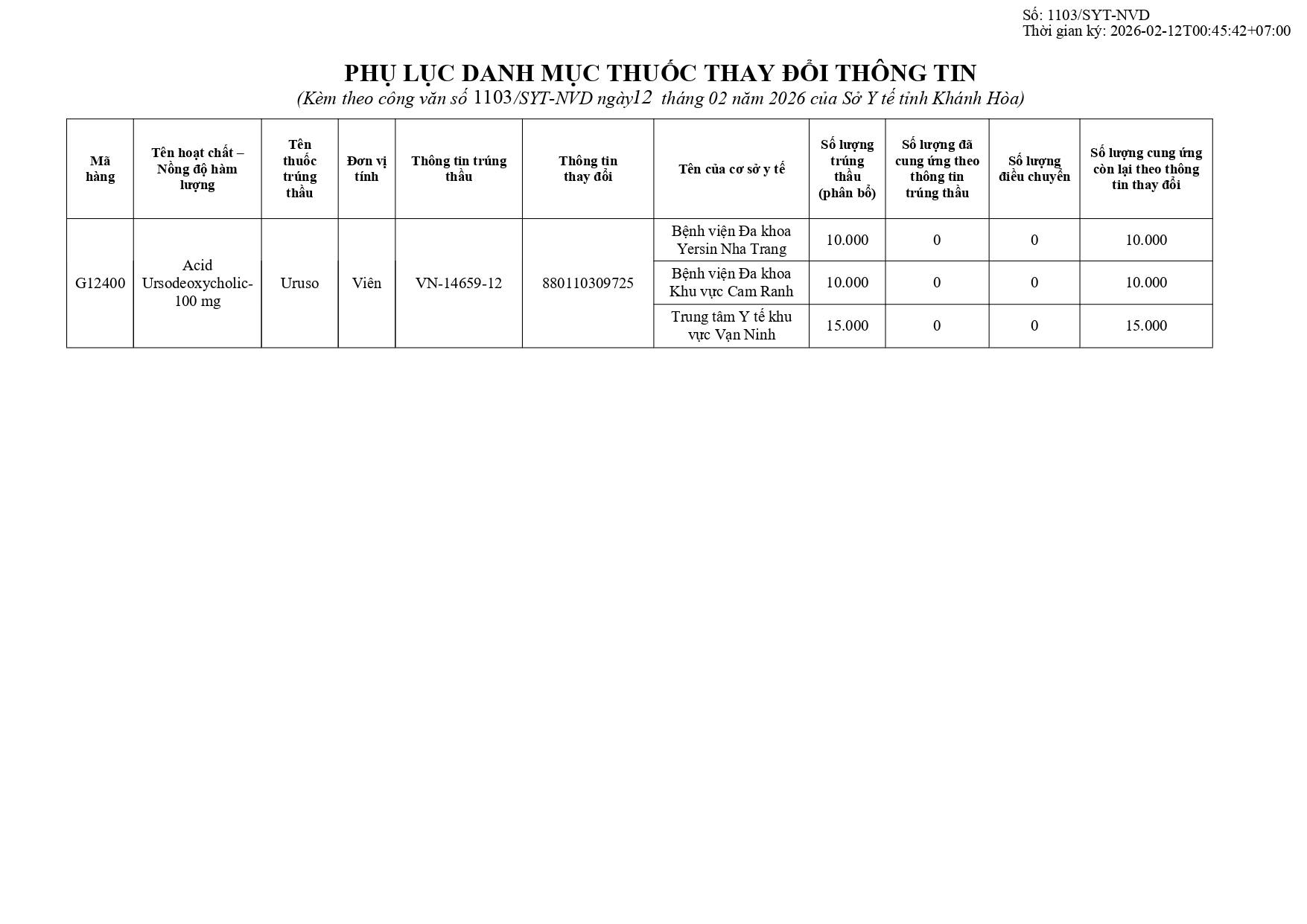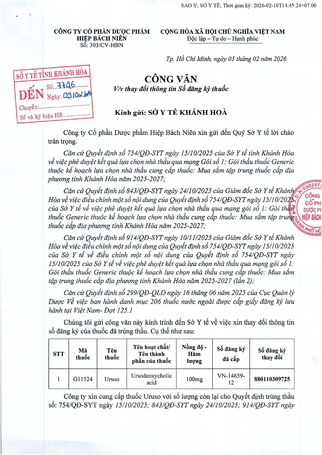 Quyết định Về việc điều chỉnh một số nội dung của Quyết định số 754/QĐ-SYT ngày 15/10/2025 của Sở Y tế về việc phê duyệt kết quả lựa chọn nhà thầu qua mạng gói số 1: Gói thầu thuốc Generic thuộc kế hoạch lựa chọn nhà thầu cung cấp thuốc: Mua sắm tập trung thuốc cấp địa phương tỉnh Khánh Hòa năm 2025-2027 (lần 2)