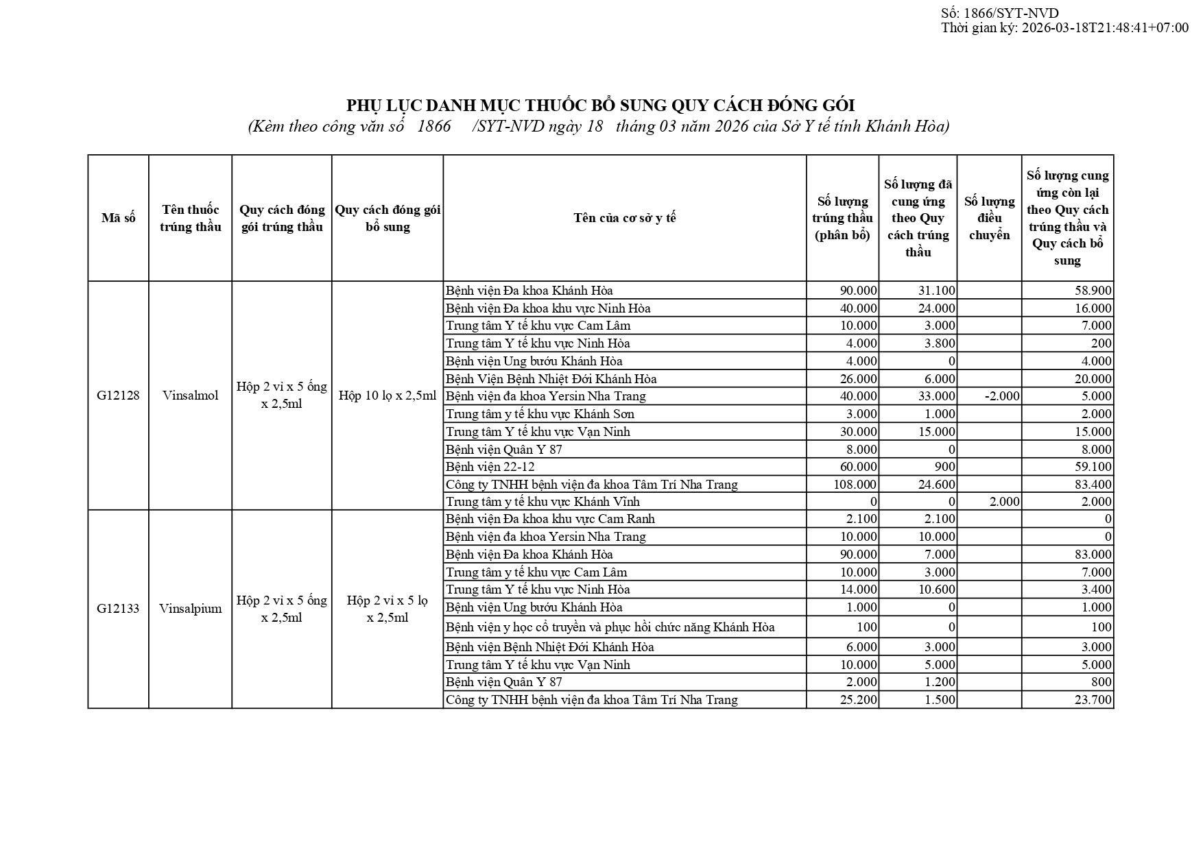 Quyết định Về việc điều chỉnh một số nội dung của Quyết định số 754/QĐ-SYT ngày 15/10/2025 của Sở Y tế về việc phê duyệt kết quả lựa chọn nhà thầu qua mạng gói số 1: Gói thầu thuốc Generic thuộc kế hoạch lựa chọn nhà thầu cung cấp thuốc: Mua sắm tập trung thuốc cấp địa phương tỉnh Khánh Hòa năm 2025-2027 (lần 2)