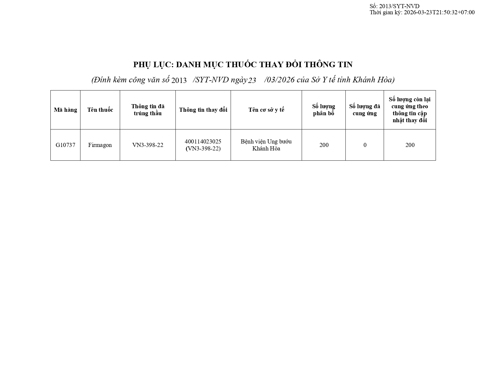 Quyết định Về việc điều chỉnh một số nội dung của Quyết định số 754/QĐ-SYT ngày 15/10/2025 của Sở Y tế về việc phê duyệt kết quả lựa chọn nhà thầu qua mạng gói số 1: Gói thầu thuốc Generic thuộc kế hoạch lựa chọn nhà thầu cung cấp thuốc: Mua sắm tập trung thuốc cấp địa phương tỉnh Khánh Hòa năm 2025-2027 (lần 2)