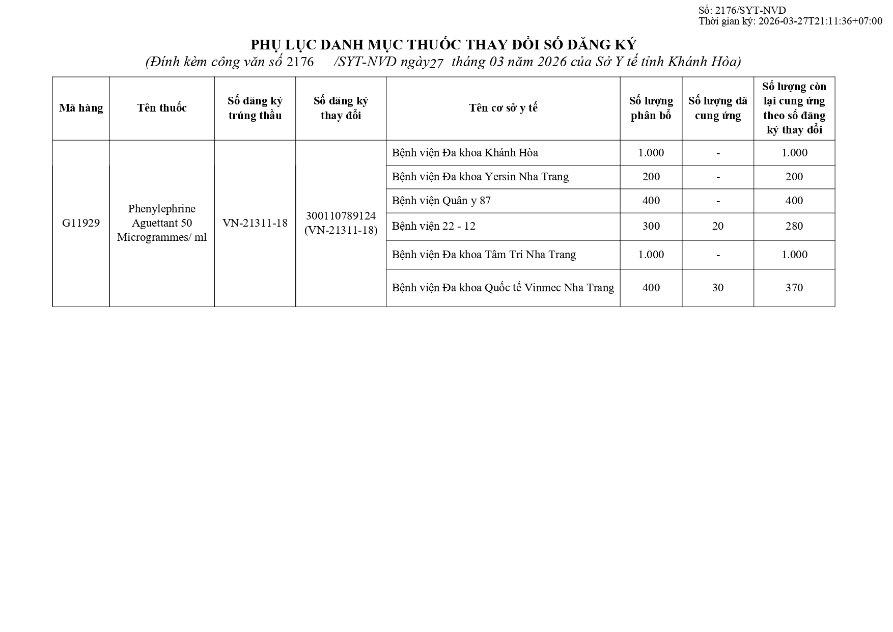 Quyết định Về việc điều chỉnh một số nội dung của Quyết định số 754/QĐ-SYT ngày 15/10/2025 của Sở Y tế về việc phê duyệt kết quả lựa chọn nhà thầu qua mạng gói số 1: Gói thầu thuốc Generic thuộc kế hoạch lựa chọn nhà thầu cung cấp thuốc: Mua sắm tập trung thuốc cấp địa phương tỉnh Khánh Hòa năm 2025-2027 (lần 2)