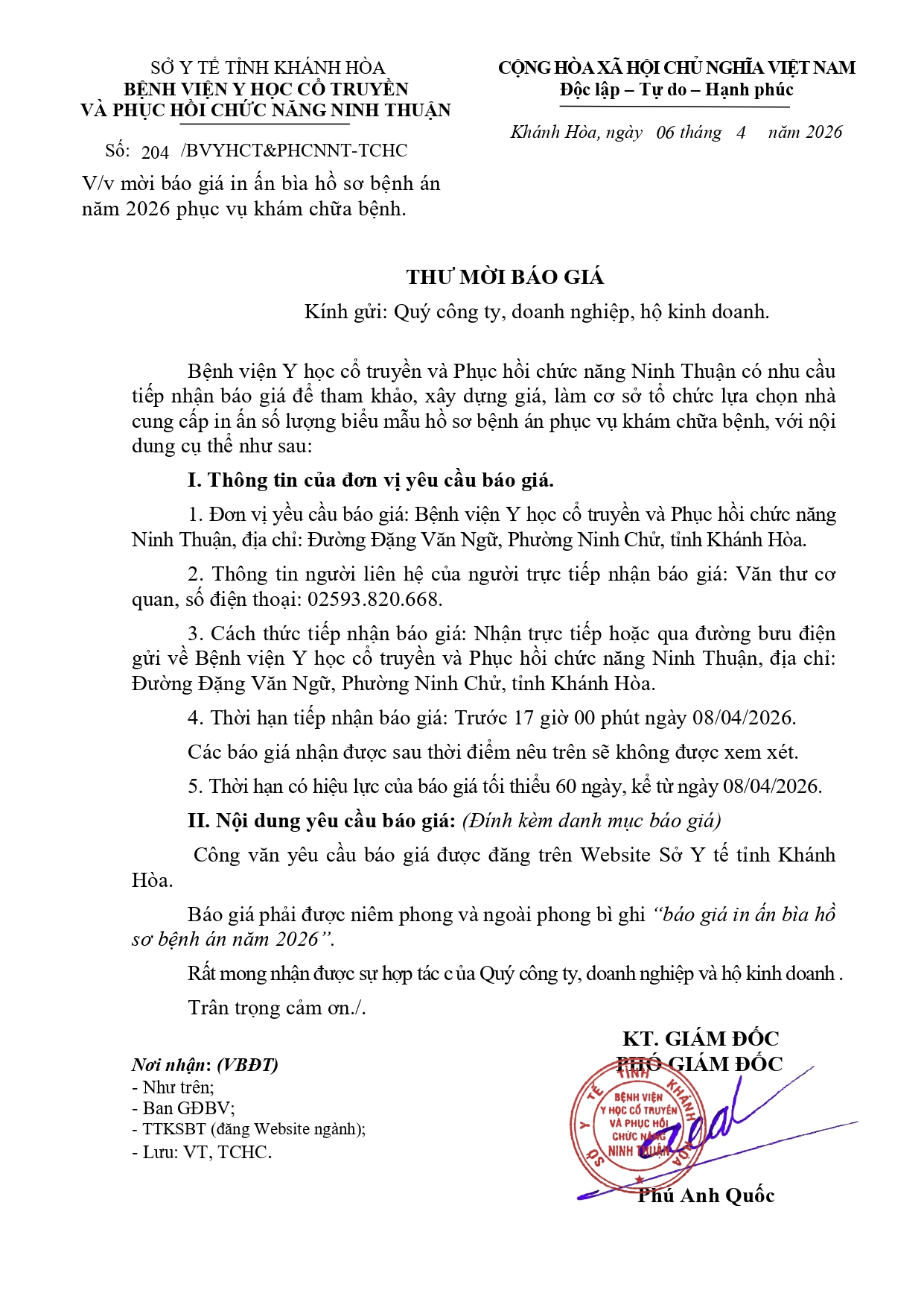 V/v mời báo giá dịch vụ Tuyên truyền hưởng ứng Ngày sức khỏe toàn dân Việt Nam (07/4) năm 2026