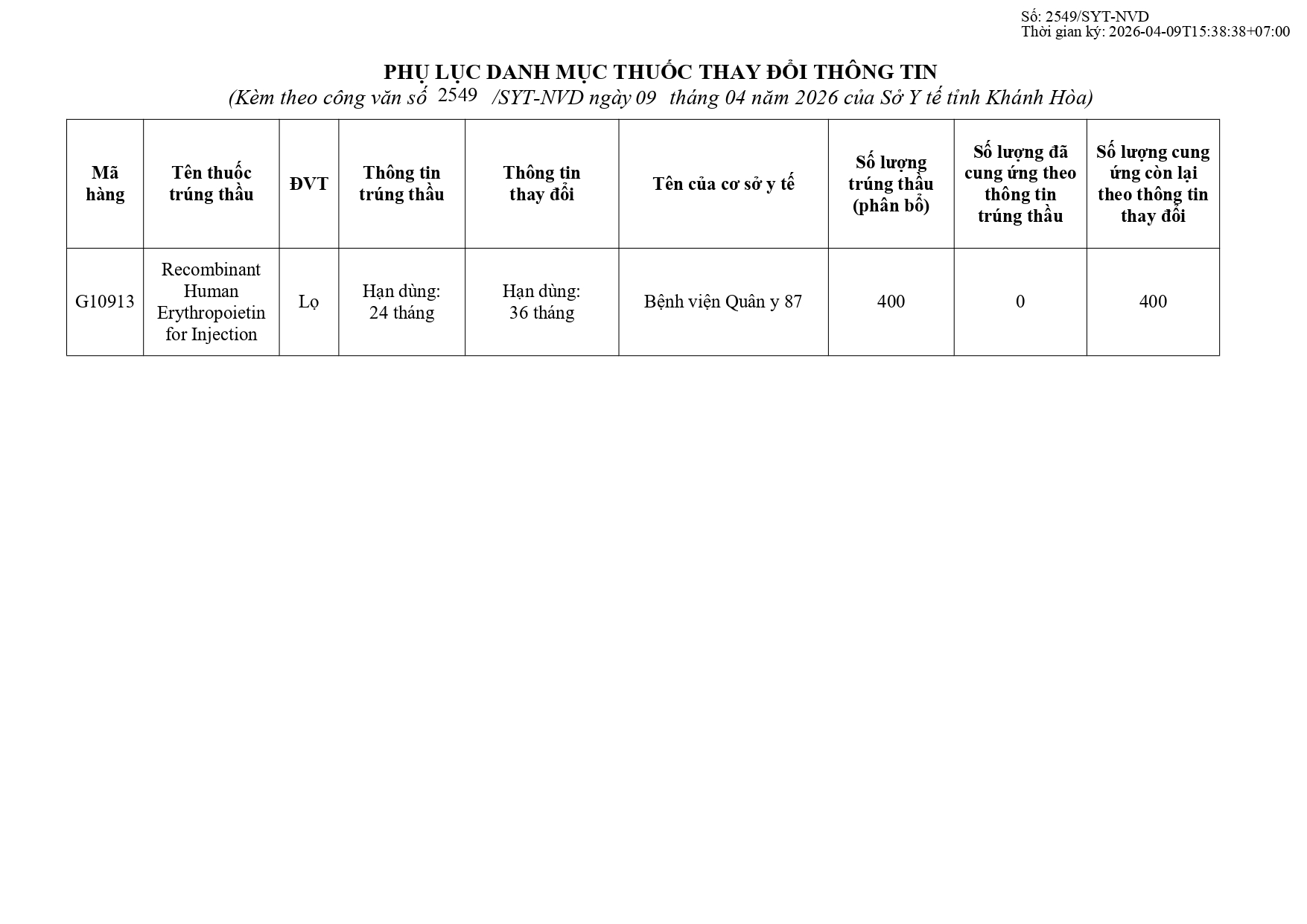 Quyết định Về việc điều chỉnh một số nội dung của Quyết định số 754/QĐ-SYT ngày 15/10/2025 của Sở Y tế về việc phê duyệt kết quả lựa chọn nhà thầu qua mạng gói số 1: Gói thầu thuốc Generic thuộc kế hoạch lựa chọn nhà thầu cung cấp thuốc: Mua sắm tập trung thuốc cấp địa phương tỉnh Khánh Hòa năm 2025-2027