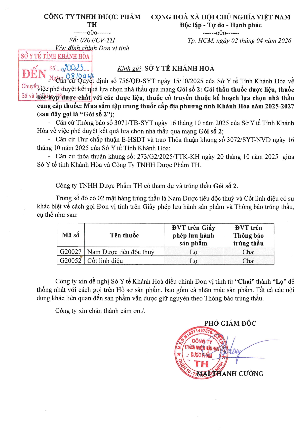 Quyết định Về việc điều chỉnh một số nội dung của Quyết định số 754/QĐ-SYT ngày 15/10/2025 của Sở Y tế về việc phê duyệt kết quả lựa chọn nhà thầu qua mạng gói số 1: Gói thầu thuốc Generic thuộc kế hoạch lựa chọn nhà thầu cung cấp thuốc: Mua sắm tập trung thuốc cấp địa phương tỉnh Khánh Hòa năm 2025-2027