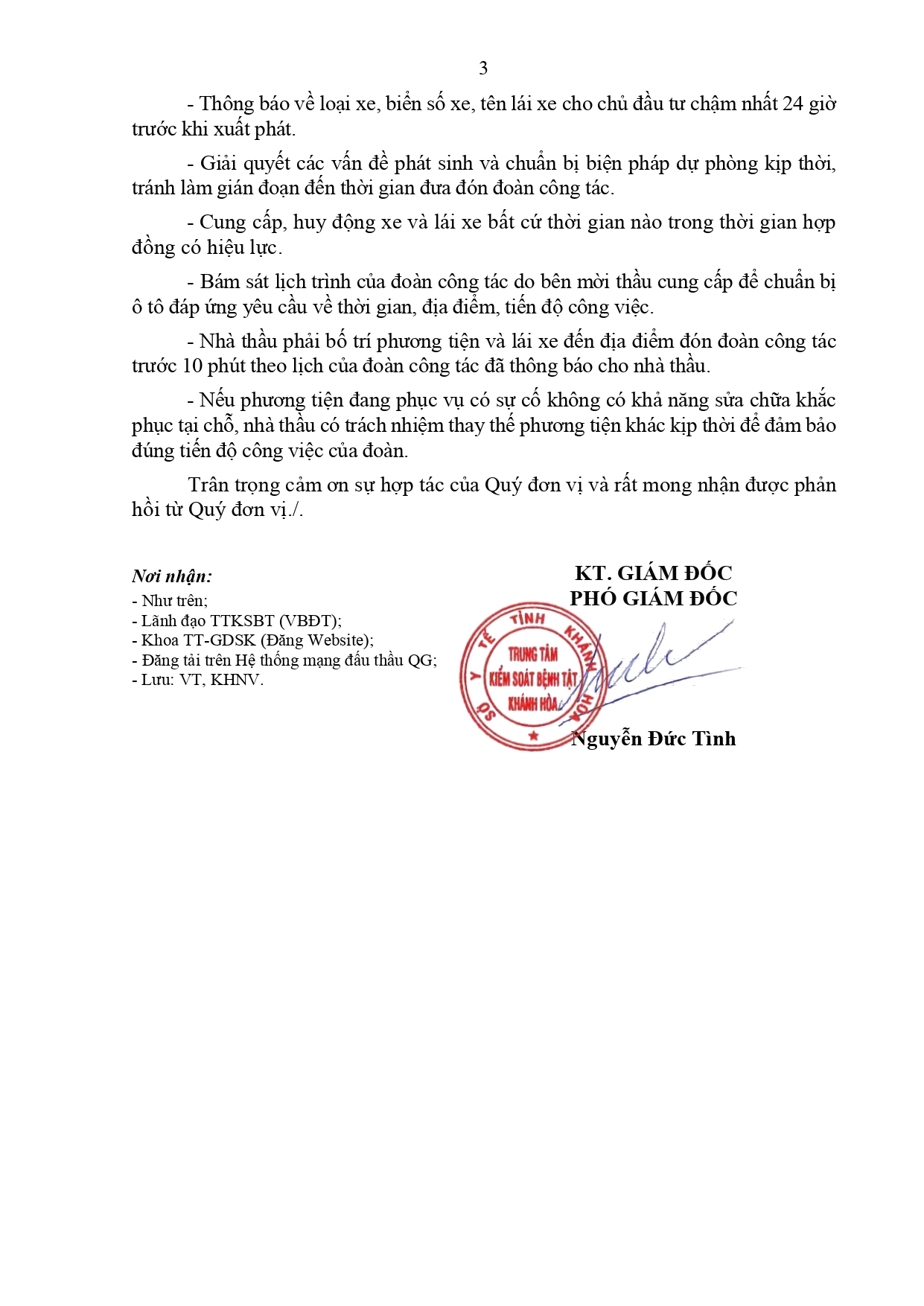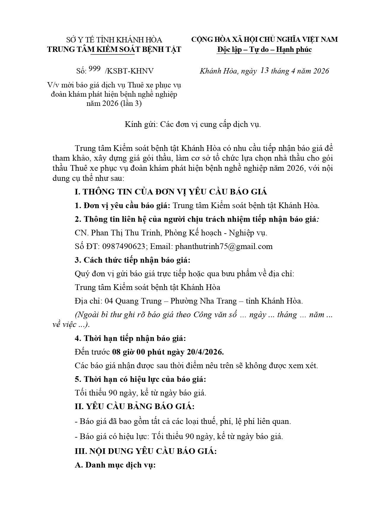 V/v mời chào giá thuê xe vận chuyển viên chức, người lao động đi công tác các huyện, thị xã, thành phố tỉnh Khánh Hòa