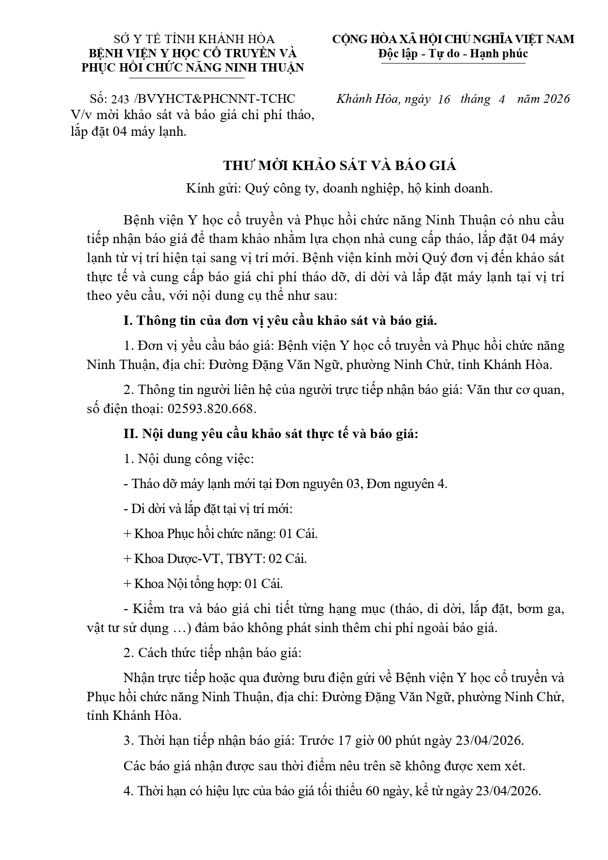 V/v mời báo giá dịch vụ Tuyên truyền hưởng ứng Ngày sức khỏe toàn dân Việt Nam (07/4) năm 2026