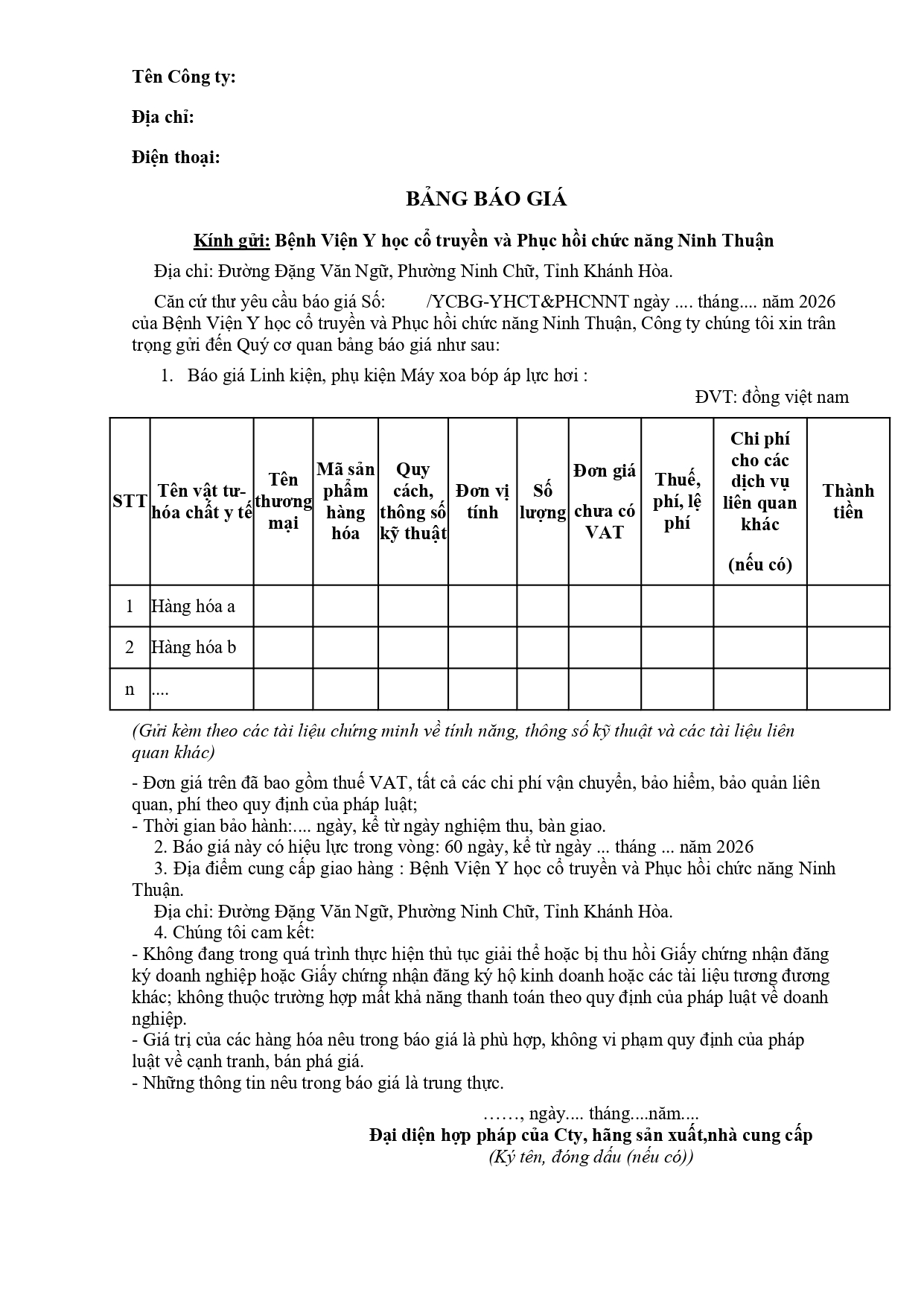 V/v mời báo giá dịch vụ Tuyên truyền hưởng ứng Ngày sức khỏe toàn dân Việt Nam (07/4) năm 2026
