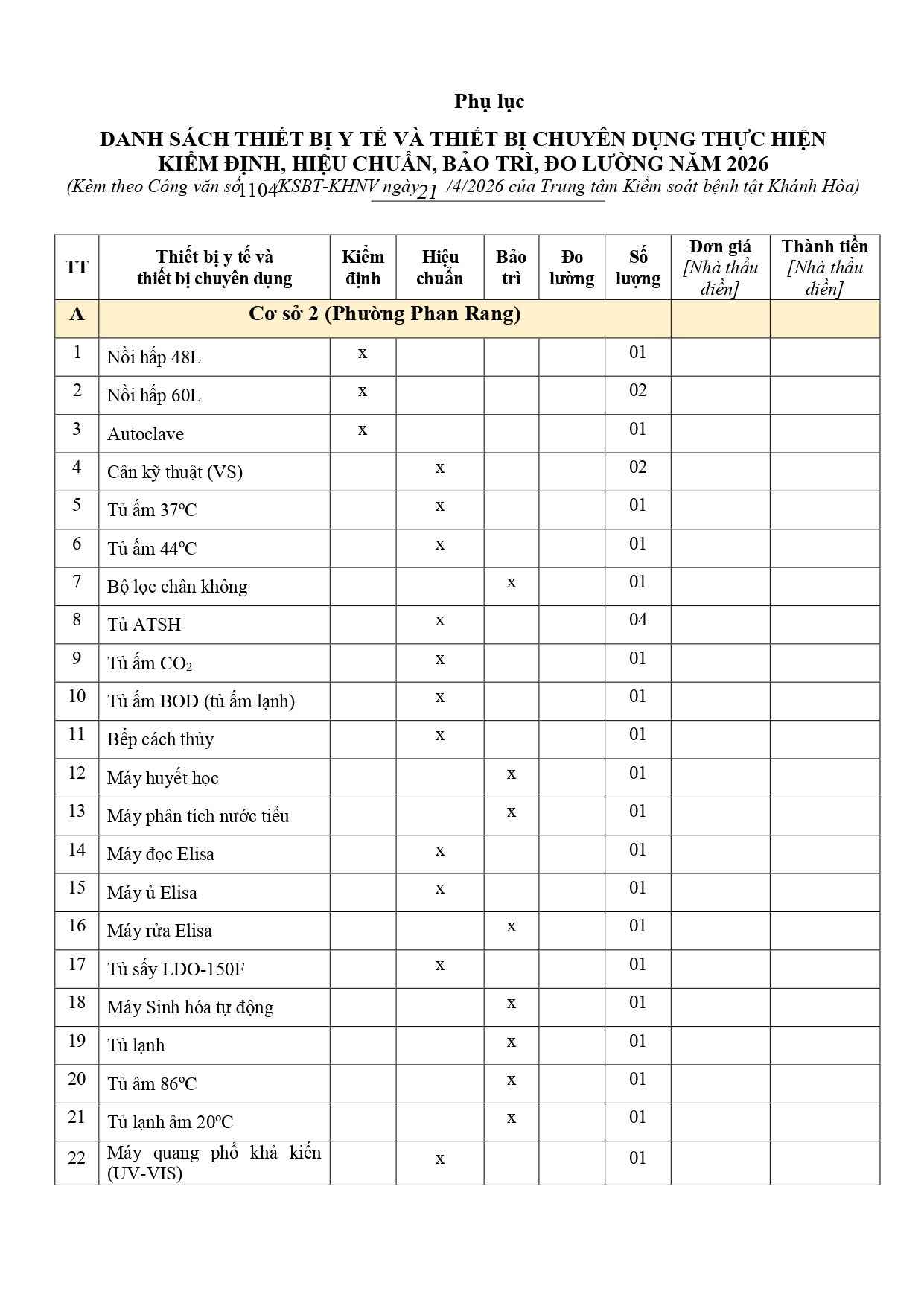 V/v mời báo giá dịch vụ Tuyên truyền hưởng ứng Ngày sức khỏe toàn dân Việt Nam (07/4) năm 2026