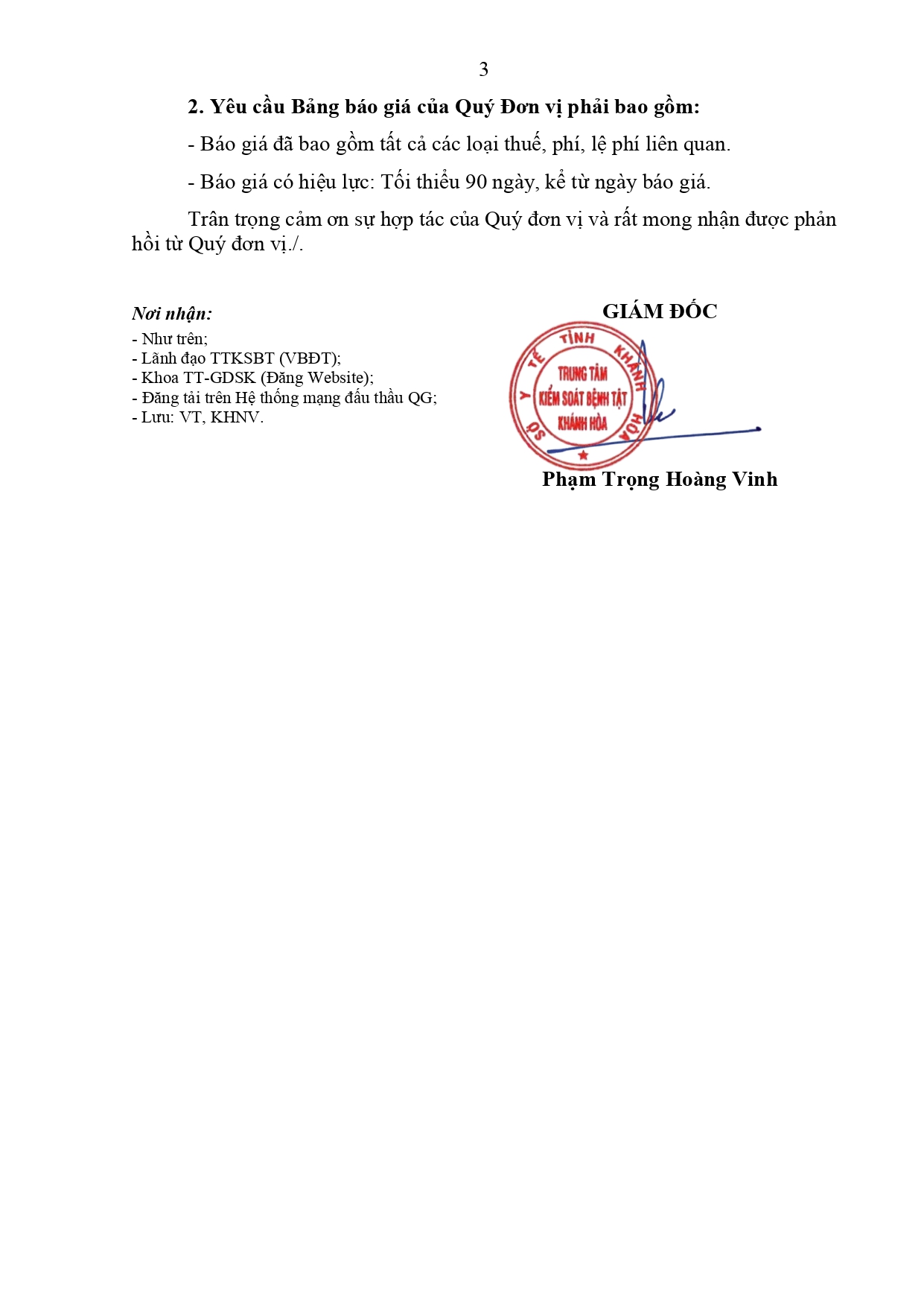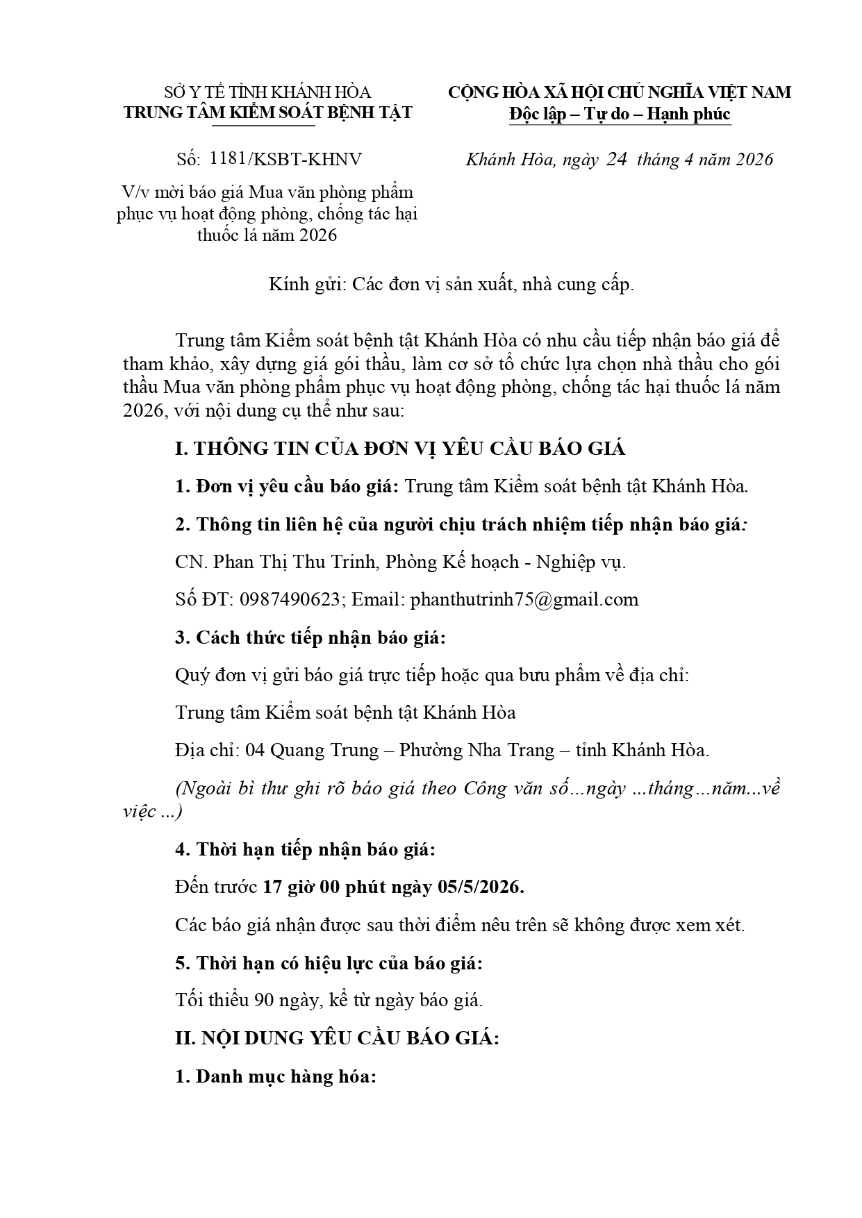 V/v mời báo giá dịch vụ Tuyên truyền hưởng ứng Ngày sức khỏe toàn dân Việt Nam (07/4) năm 2026