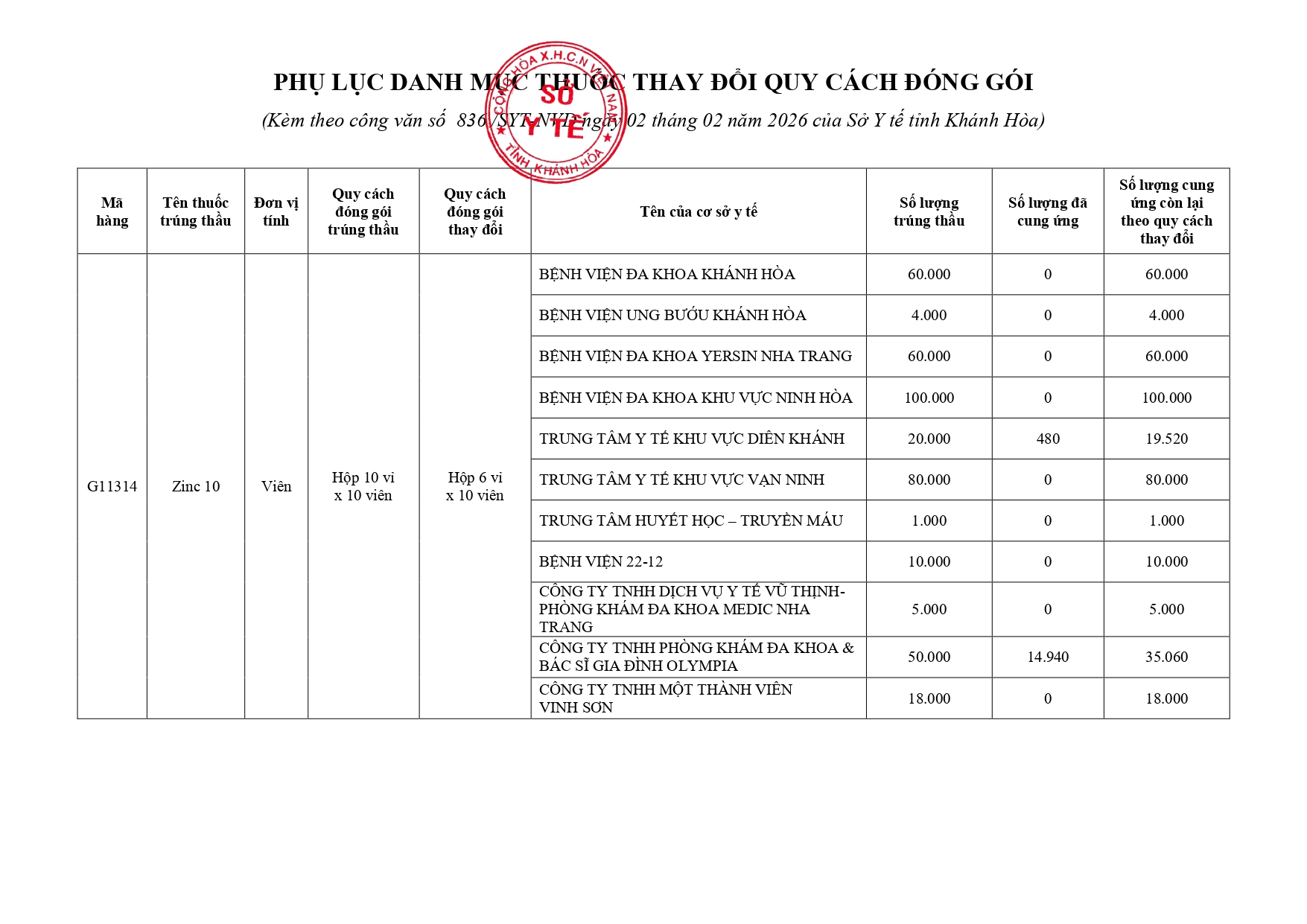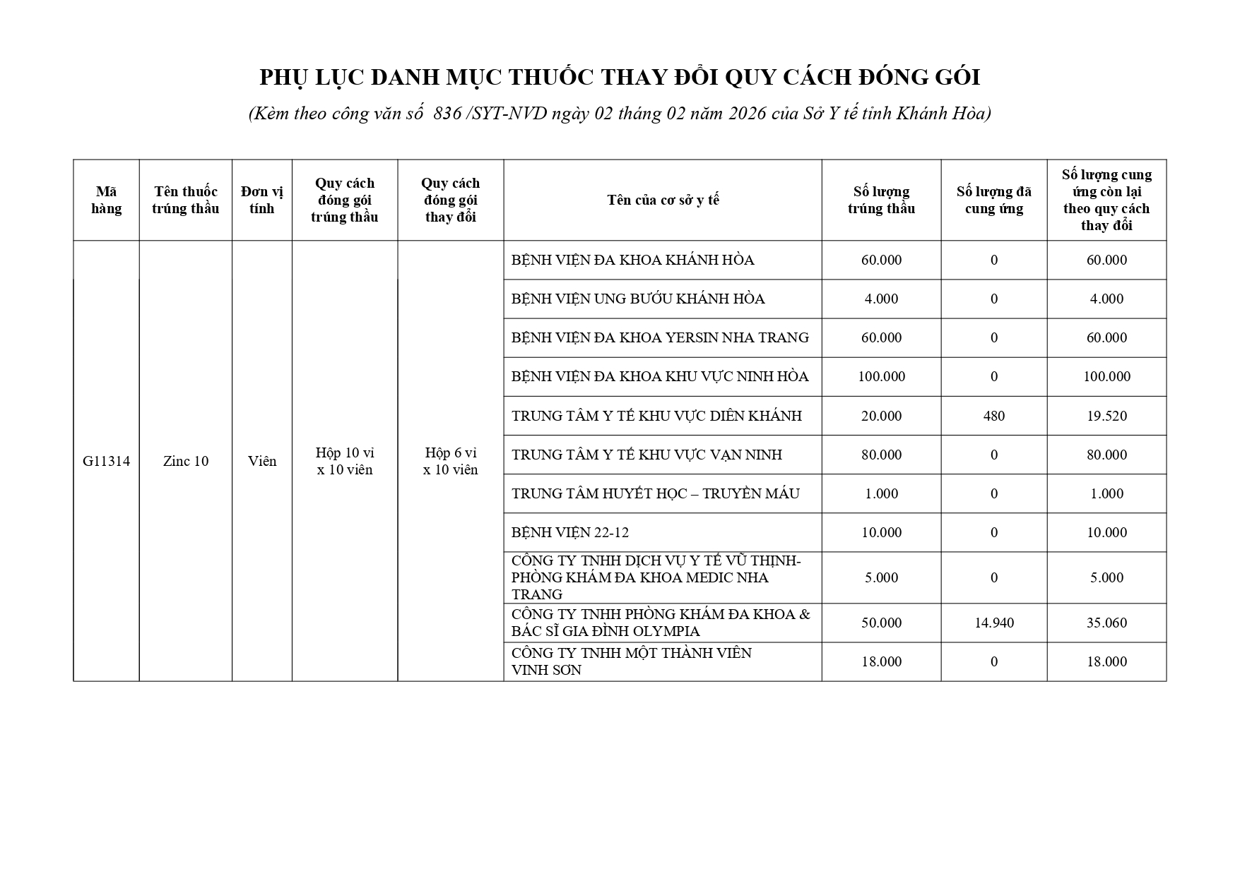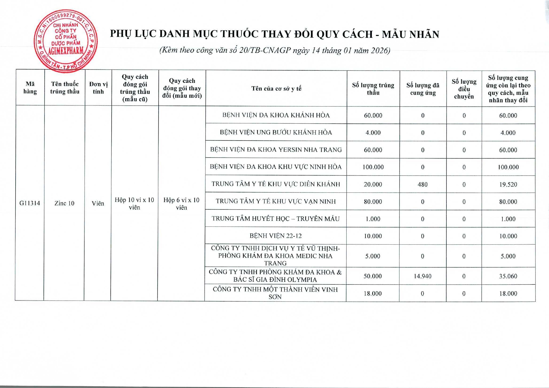 V/v thay đổi quy cách đóng gói của mặt hàng trúng thầu