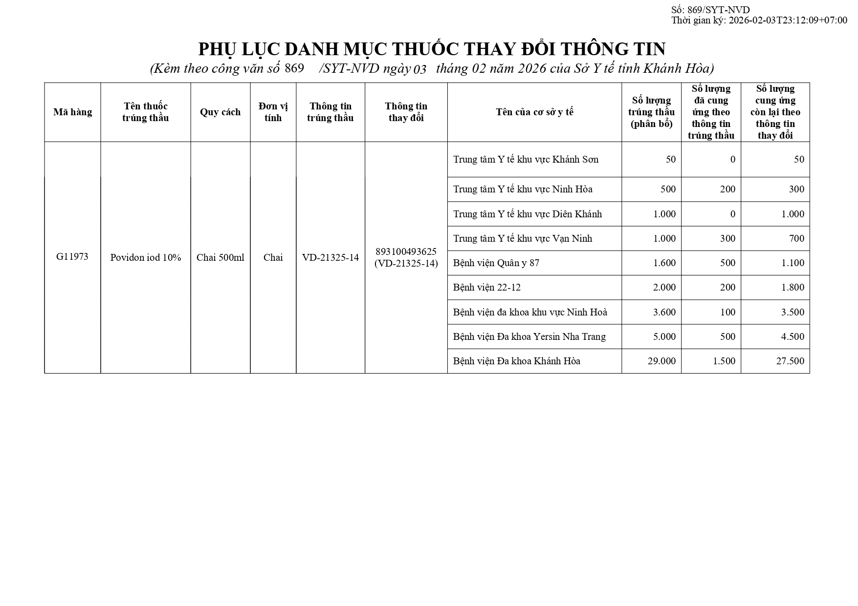 Quyết định Về việc điều chỉnh một số nội dung của Quyết định số 754/QĐ-SYT ngày 15/10/2025 của Sở Y tế về việc phê duyệt kết quả lựa chọn nhà thầu qua mạng gói số 1: Gói thầu thuốc Generic thuộc kế hoạch lựa chọn nhà thầu cung cấp thuốc: Mua sắm tập trung thuốc cấp địa phương tỉnh Khánh Hòa năm 2025-2027 (lần 2)