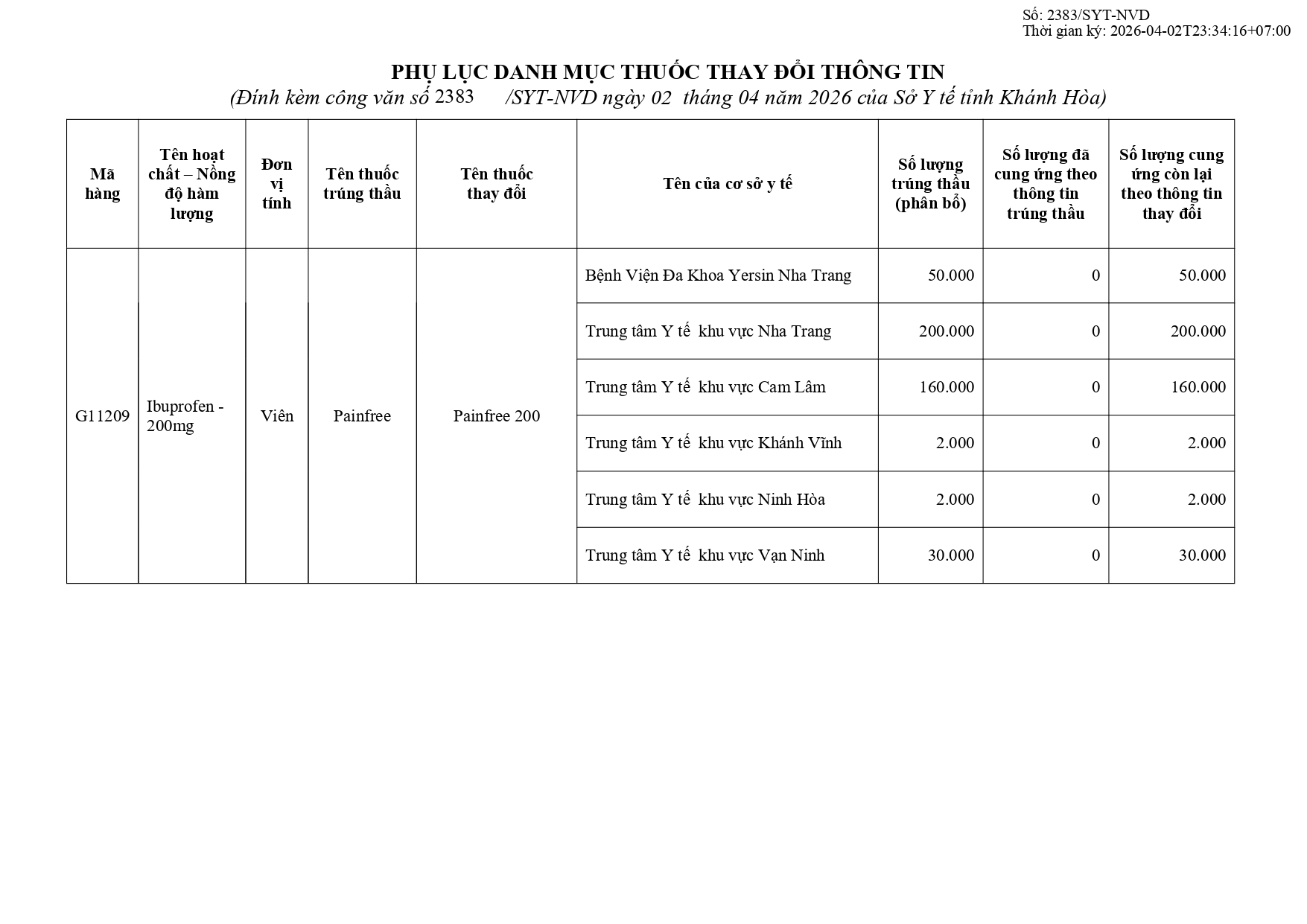 Quyết định Về việc điều chỉnh một số nội dung của Quyết định số 754/QĐ-SYT ngày 15/10/2025 của Sở Y tế về việc phê duyệt kết quả lựa chọn nhà thầu qua mạng gói số 1: Gói thầu thuốc Generic thuộc kế hoạch lựa chọn nhà thầu cung cấp thuốc: Mua sắm tập trung thuốc cấp địa phương tỉnh Khánh Hòa năm 2025-2027