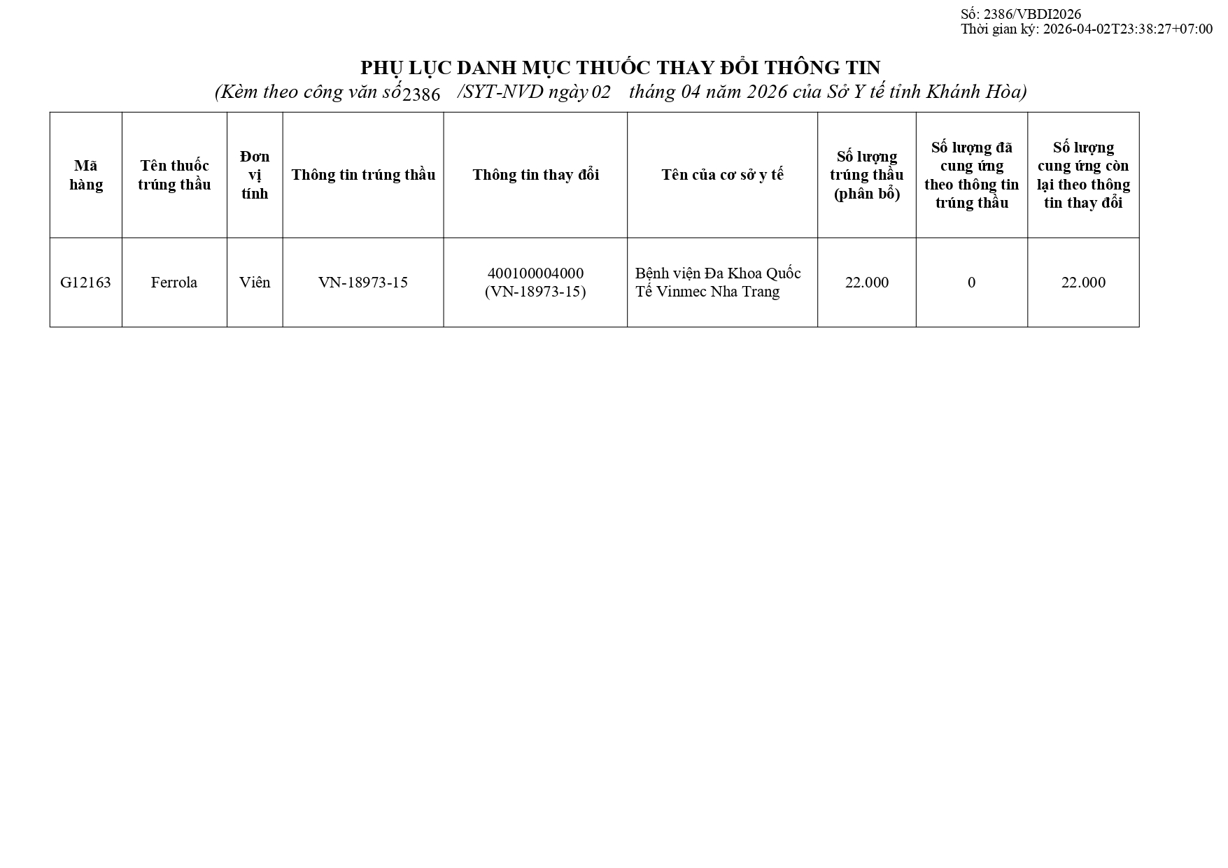 Quyết định Về việc điều chỉnh một số nội dung của Quyết định số 754/QĐ-SYT ngày 15/10/2025 của Sở Y tế về việc phê duyệt kết quả lựa chọn nhà thầu qua mạng gói số 1: Gói thầu thuốc Generic thuộc kế hoạch lựa chọn nhà thầu cung cấp thuốc: Mua sắm tập trung thuốc cấp địa phương tỉnh Khánh Hòa năm 2025-2027