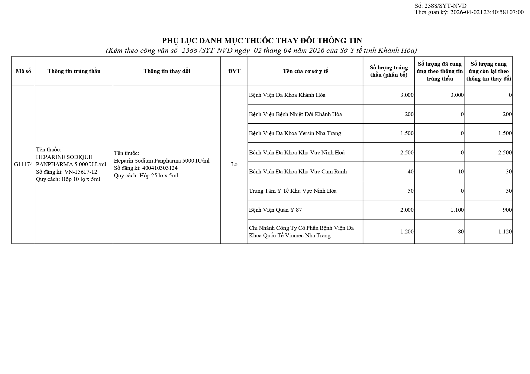 Quyết định Về việc điều chỉnh một số nội dung của Quyết định số 754/QĐ-SYT ngày 15/10/2025 của Sở Y tế về việc phê duyệt kết quả lựa chọn nhà thầu qua mạng gói số 1: Gói thầu thuốc Generic thuộc kế hoạch lựa chọn nhà thầu cung cấp thuốc: Mua sắm tập trung thuốc cấp địa phương tỉnh Khánh Hòa năm 2025-2027
