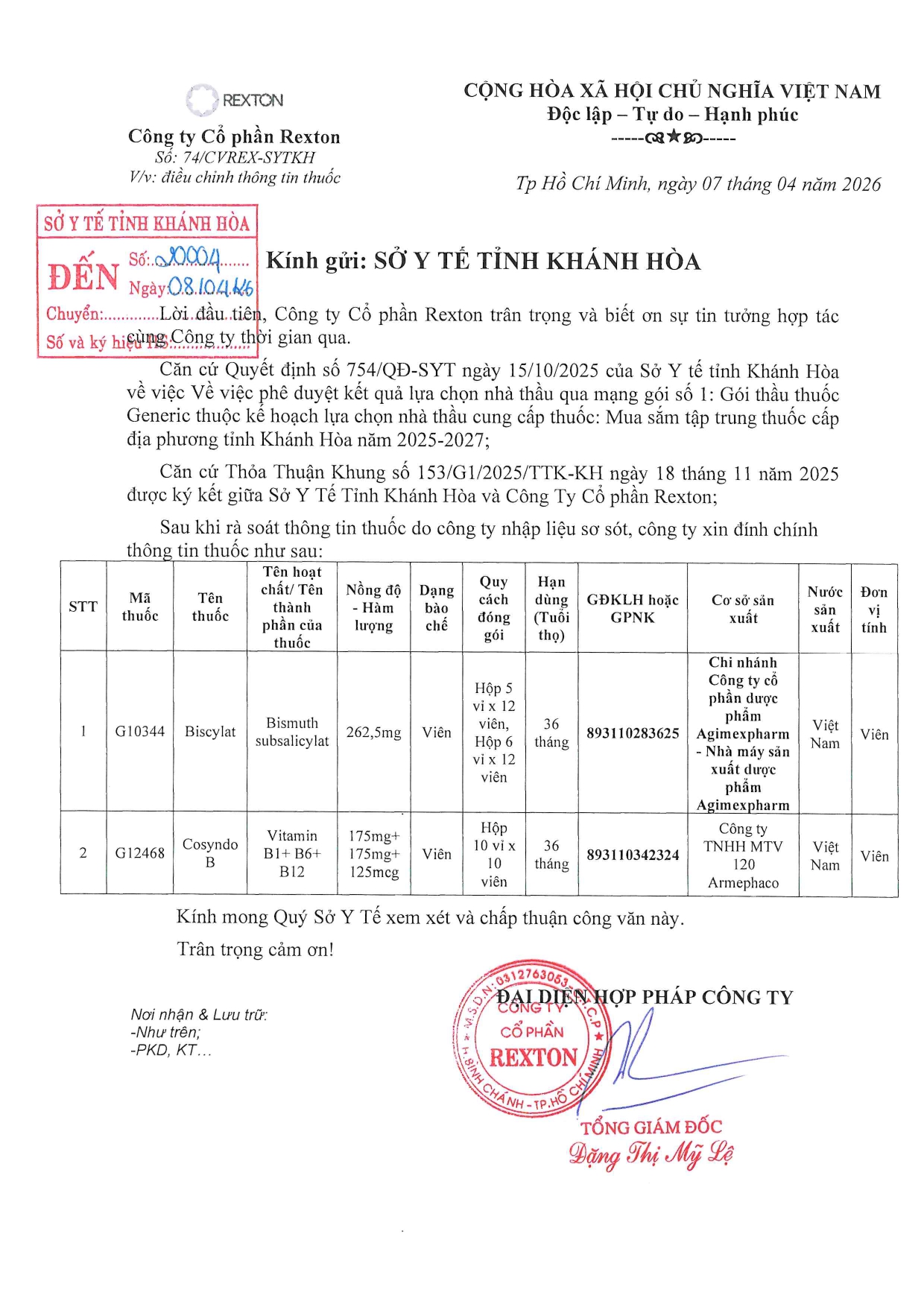 Quyết định Về việc điều chỉnh một số nội dung của Quyết định số 754/QĐ-SYT ngày 15/10/2025 của Sở Y tế về việc phê duyệt kết quả lựa chọn nhà thầu qua mạng gói số 1: Gói thầu thuốc Generic thuộc kế hoạch lựa chọn nhà thầu cung cấp thuốc: Mua sắm tập trung thuốc cấp địa phương tỉnh Khánh Hòa năm 2025-2027 (lần 2)