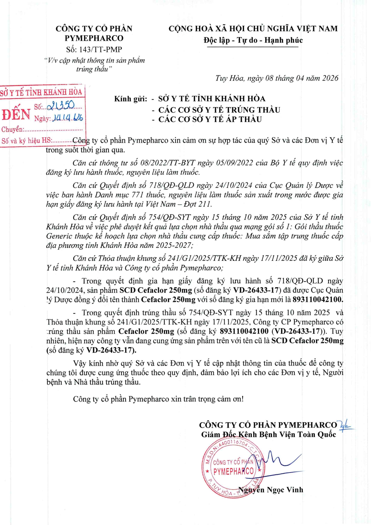 Quyết định Về việc điều chỉnh một số nội dung của Quyết định số 754/QĐ-SYT ngày 15/10/2025 của Sở Y tế về việc phê duyệt kết quả lựa chọn nhà thầu qua mạng gói số 1: Gói thầu thuốc Generic thuộc kế hoạch lựa chọn nhà thầu cung cấp thuốc: Mua sắm tập trung thuốc cấp địa phương tỉnh Khánh Hòa năm 2025-2027 (lần 2)
