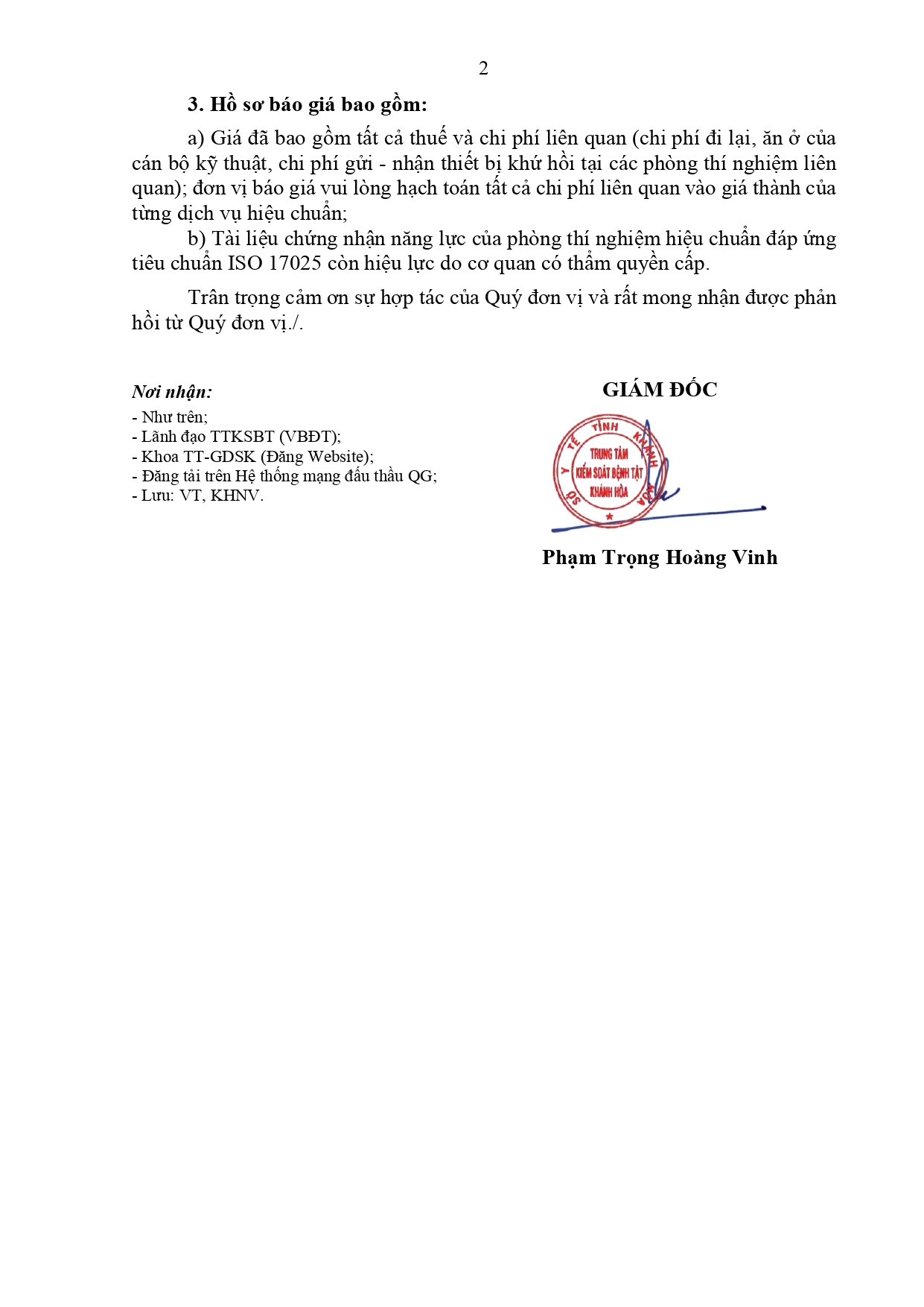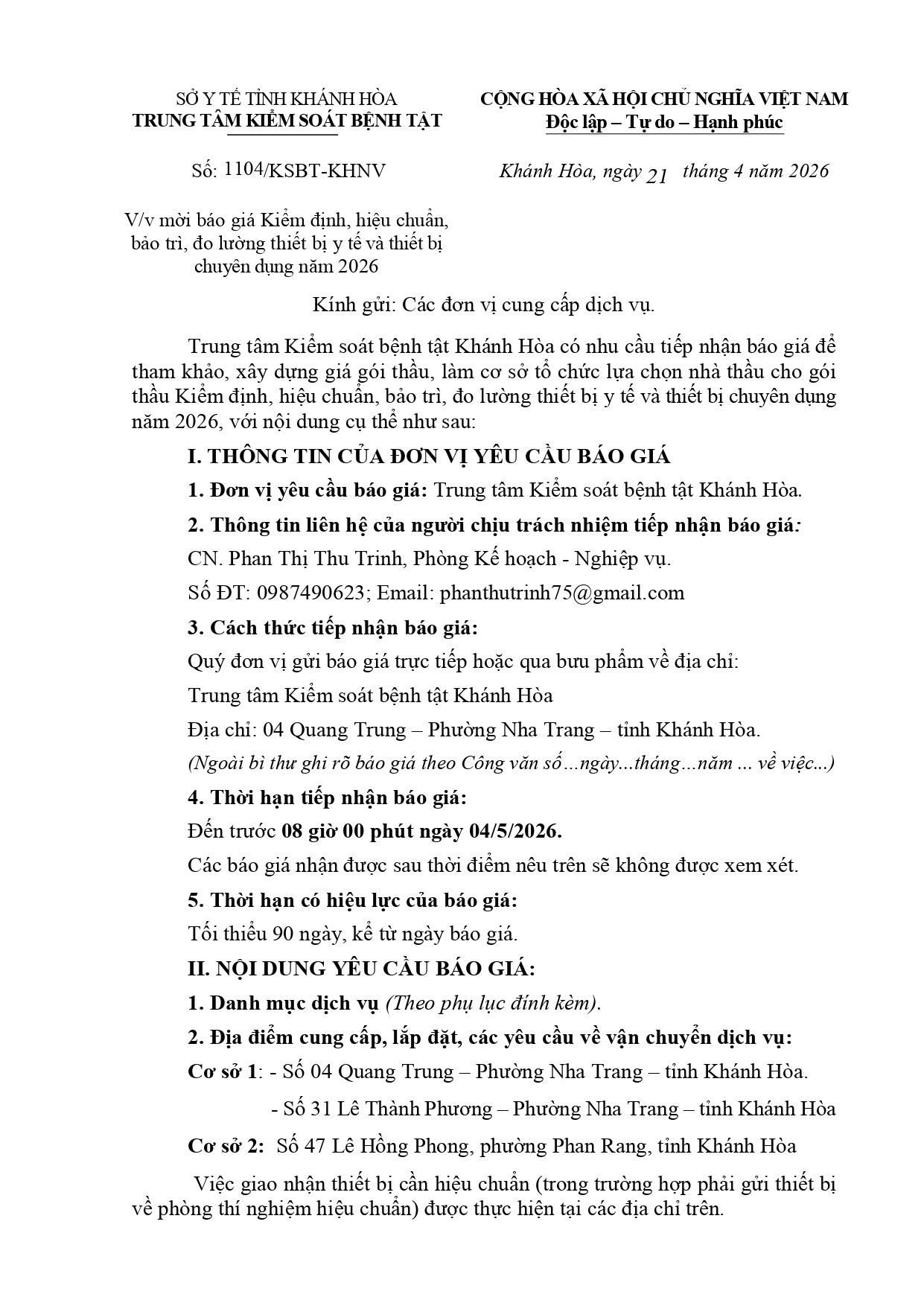 V/v mời báo giá dịch vụ Tuyên truyền hưởng ứng Ngày sức khỏe toàn dân Việt Nam (07/4) năm 2026